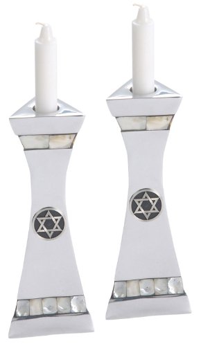 Aluminum Candlestick Set with Natural colored inlaid stones and a Star of David. Measures 8" tall. Read more...