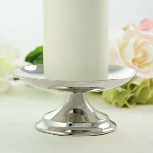 An ideal complimentary piece to any signature unity or memorial candle, our Silver Pillar Candle Holder looks incredible in any setting. Whether you're decorating a wedding day alter or a furnished mantle, this classically designed candle stand gives the appropriate amount of lift to every candle it upholds. Crafted of silver-plated metal and structured with smooth, round edges, it is one piece of decor that will never go out of style! Details: Size: Measures 5 1/2 inches wide by 2 1/2 inches tall. Materials: Silver-plated metal Read more...