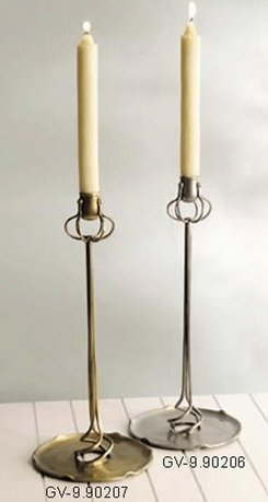This beautiful nickel candlestick -- shown on the right in the picture -- has a sort of swirling, root-like organic look to it, despite being made out of metal. Sold as a single candle holder only -- candle not included. Also available in antique brass (shown on the left in this picture). 7.5 Dia X 16.25H Read more...
