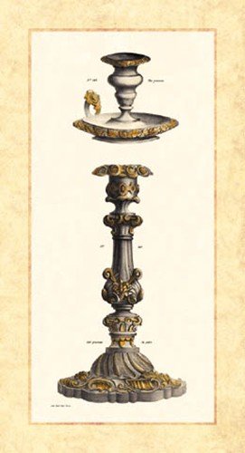 Title: Plateria - Candelabro I. Artist: Unknown. Image Size: 8.17in. x 17.86in. Paper Size: 11.00in. x 19.75in. FINEST BRAND CANVAS Print With Added Heavy BRUSHSTROKES