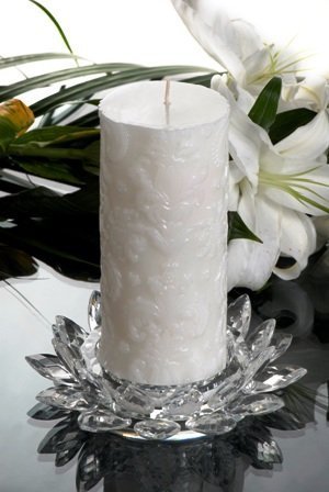 6331 LumireD'esprit Crystal Glass Candle Holder Giftset with Carved LacqueredPillar Candle Show off your exquisite Crystal Candle Holder whichincludes an ivory colored unscented Carved Lacquered Pillar Candle as they putoff a wonderful and romantic light. Crafted with 24 petals geometric cuts prism-like shine and intricately detailed accents this stunning Crystal Candleset shimmers and creates a wonderful atmosphere for special occasions. Thedamask pattern carved into the lacquered candle is a favorite design forwedding tables. Look for other coordinating pieces of the Lumire D'esprit Crystal and Candle Collection along with additional replacement candles. Giftset Includes:* Crystal Glass Pillar Candle Holder approx. 1 3/4 h x 6 3/4 w - weighs approx. 1.35lbs.* 3 d x 7 h Carved Lacquered Pillar Candle ivorycolored (unscented) weighs approx 1.5 lbs.* Makes a wonderful gift* Hand wash crystal holder with mild soap and hand dry Weight approximately 3.7 lbs. Case Quantity : 4 Occasions : Wedding Read more...
