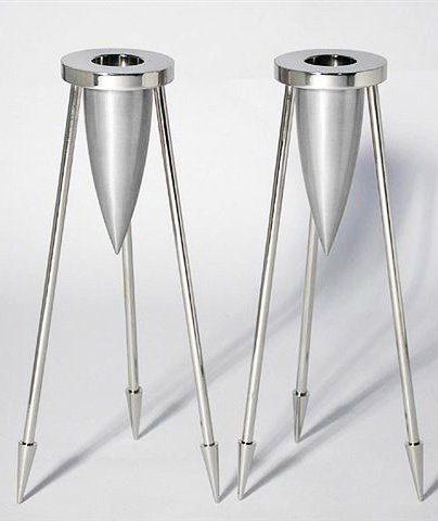 The three main parts of each candlestick are inspired by different futuristic themes. The disc is reminiscent of the orbs surrounding planet Saturn, the candle holder an inverted rocket and the legs are delicate and elongated to create the impression of lightness as if the rocket is shooting off into space. Material - Polished Stainless Steel and Anodized AluminumHeight - 16 cm Read more...