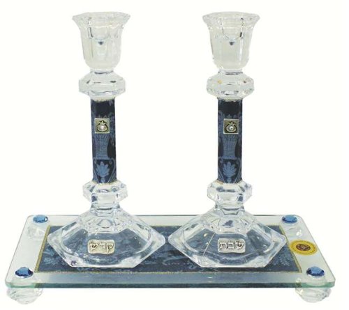 Free Shipping Lily Art Glass Appliqued Blue Shabbat Candle Stick Holders and Tray @ Amazon.com