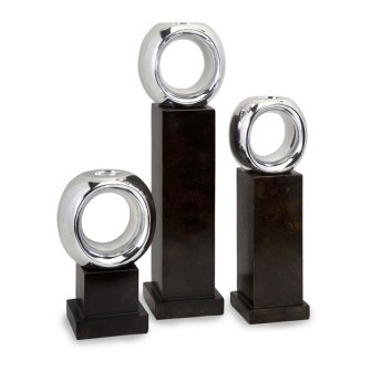 IMAX Carolyn Kinder Designed Modern Mahogany Based Silver Oval Toped Votive Candle Stick Set Of Three Review