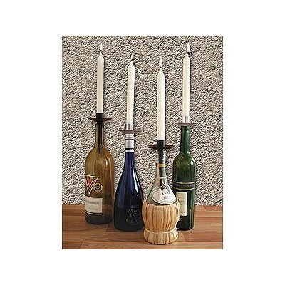 Turn empty wine bottles into distinctive candelabras! These pretty candle holders fit easily into wine bottles and provide a unique way to display your taper candles. Rubber rings ensure a secure fit. Made of cast aluminum with a matte bronze finish. Read more...